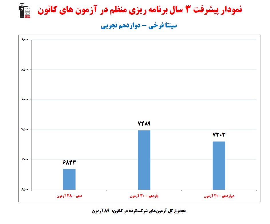 سپنتا فرخی ،قهرمان پیوستگی ، نمودار پیشرفت در 3 سال ، 89 آزمون
