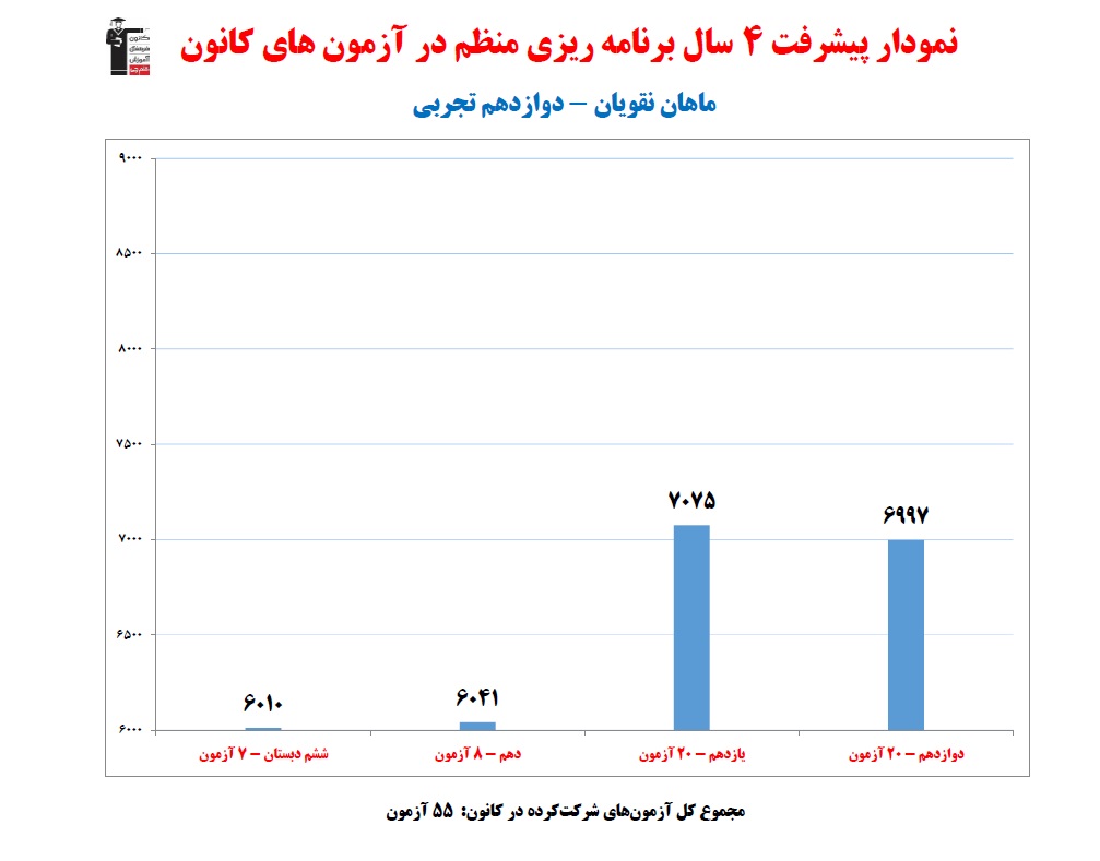 ماهان نقویان ،قهرمان پیوستگی ، نمودار پیشرفت در 4 سال ، 55 آزمون، دوازدهم تجربی