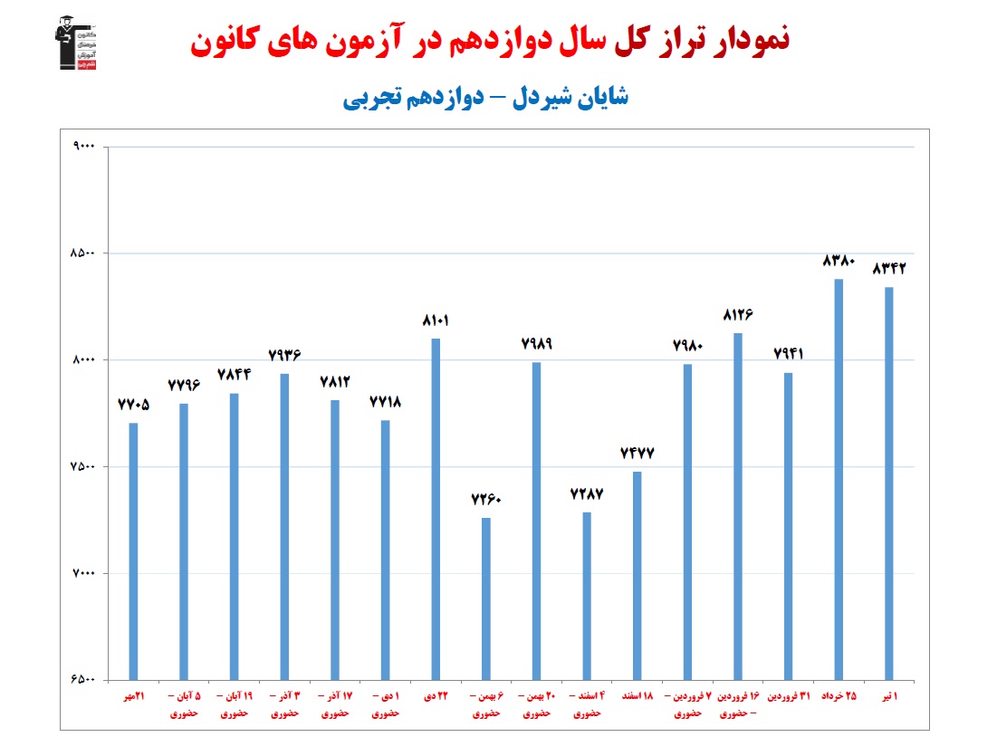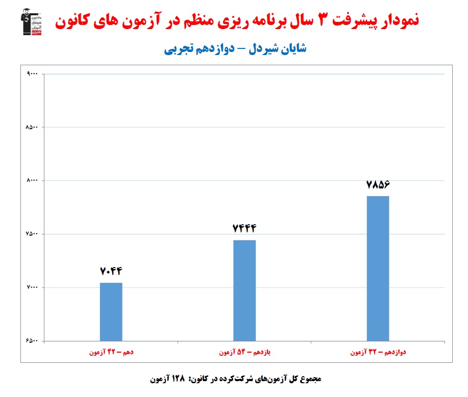 شایان شیردل؛ نمودار پیشرفت در 3 سال، 128 آزمون دوازدهم تجربی