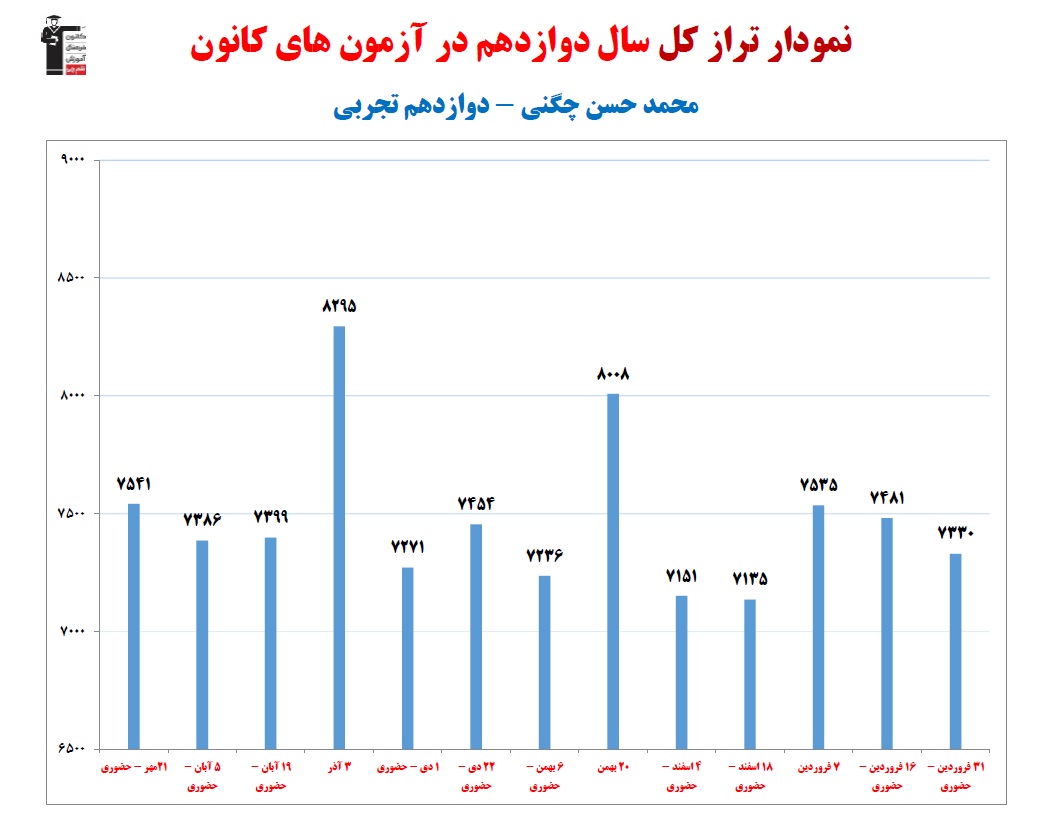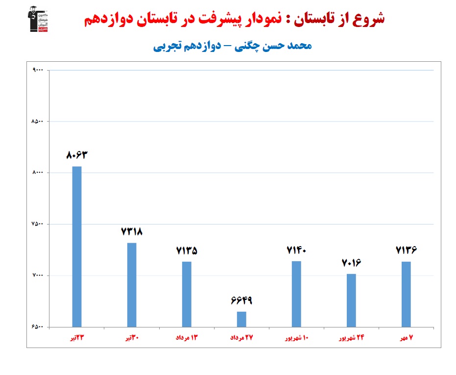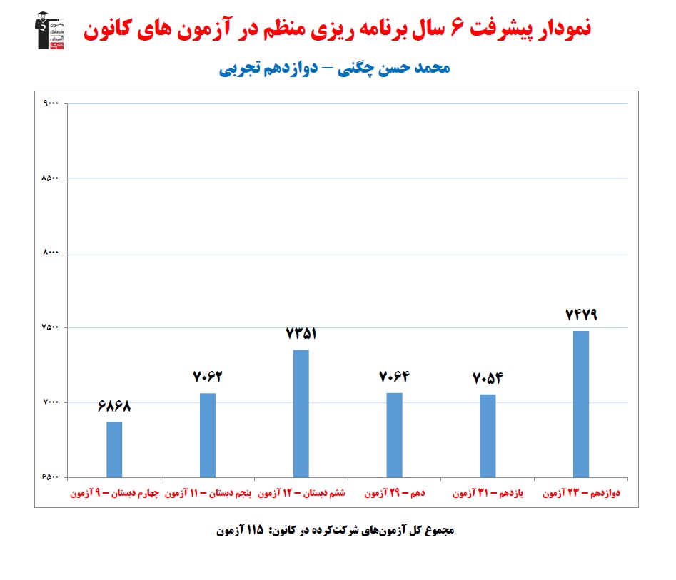 محمد حسن چگنی ،قهرمان پیوستگی ، نمودار پیشرفت در 6 سال ، 115 آزمون
