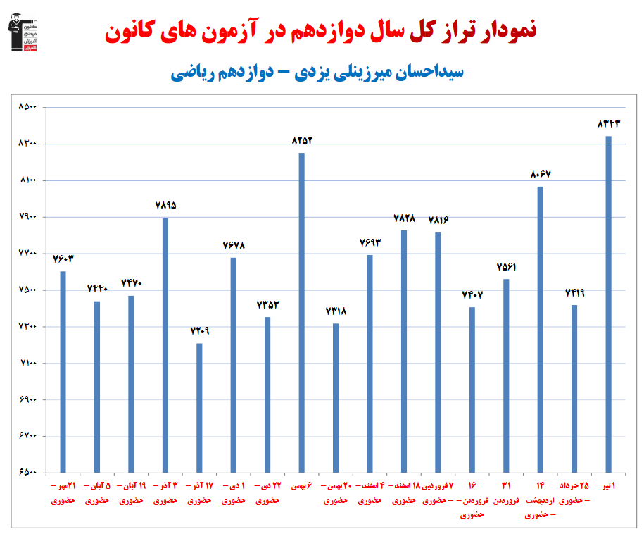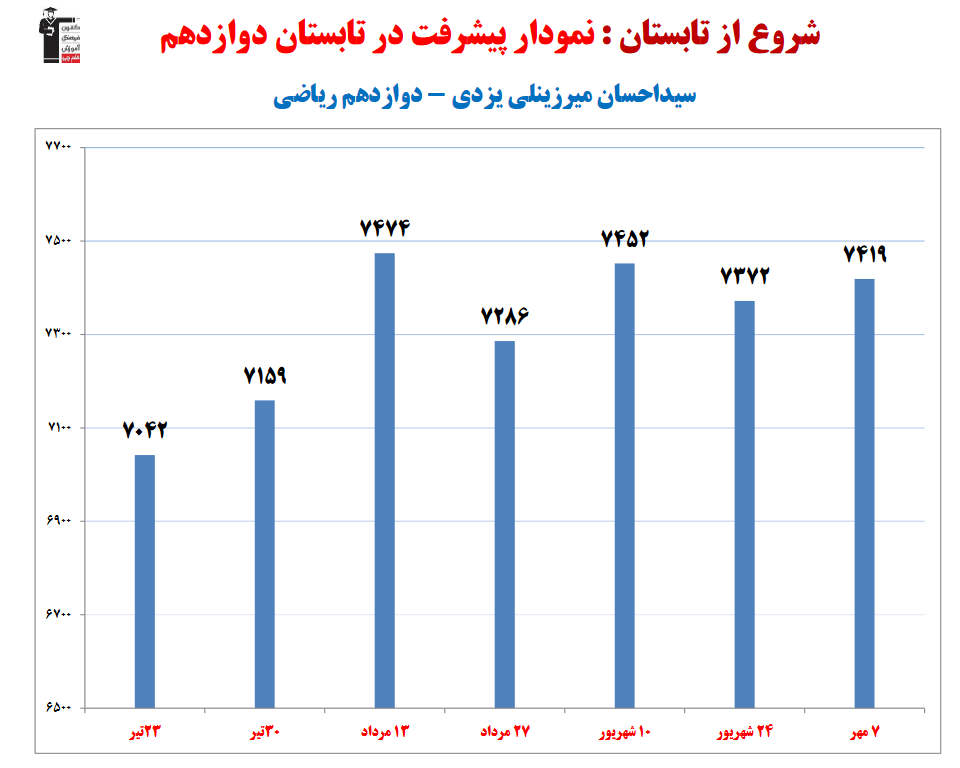 سیداحسان میرزینلی یزدی؛ نمودار پیشرفت در 1سال، 2438پاسخ صحیح از یزد