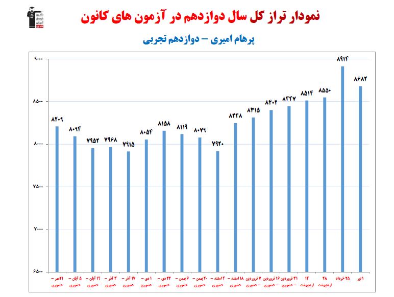 پرهام امیری ، برتر دوازدهم تجربی نمودار پیشرفت با 3602 پاسخ صحیح