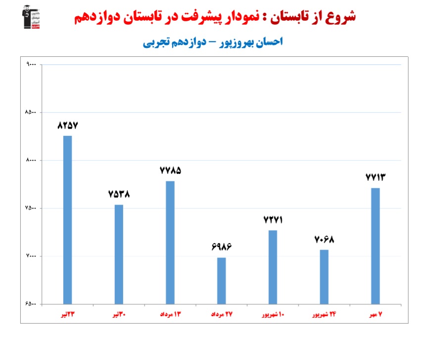 نمودار احسان بهروزپور، قهرمان پیوستگی، نمودار پیشرفت در4سال، 95 آزمون را ببینید