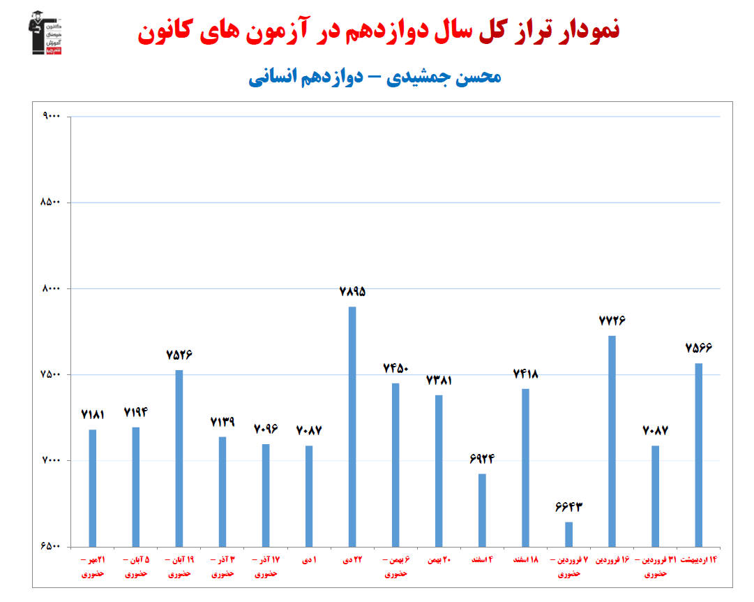 محسن جمشیدی؛ نمودار پیشرفت در 1 سال، 2108 پاسخ صحیح