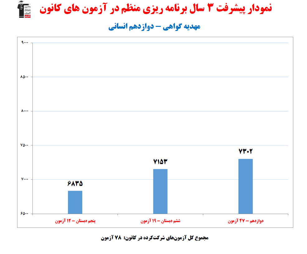 مهدیه گواهی؛ نمودار پیشرفت در 3 سال، 3004 پاسخ صحیح