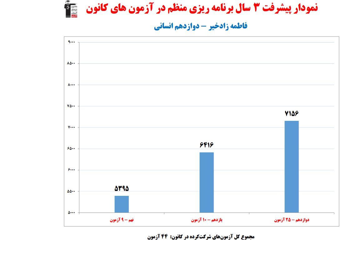 فاطمه زادخیز؛ نمودار پیشرفت در 3 سال، 2279 پاسخ صحیح