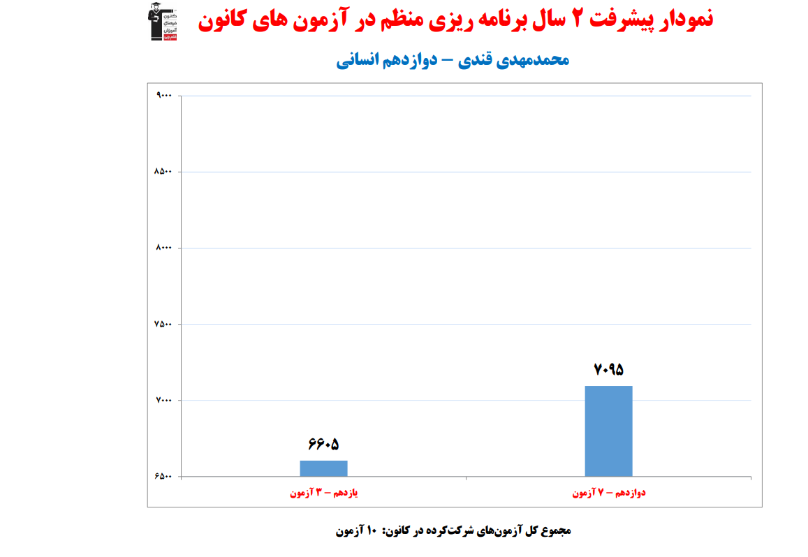محمدمهدی قندی؛ نمودار پیشرفت در 2 سال، 829 پاسخ صحیح