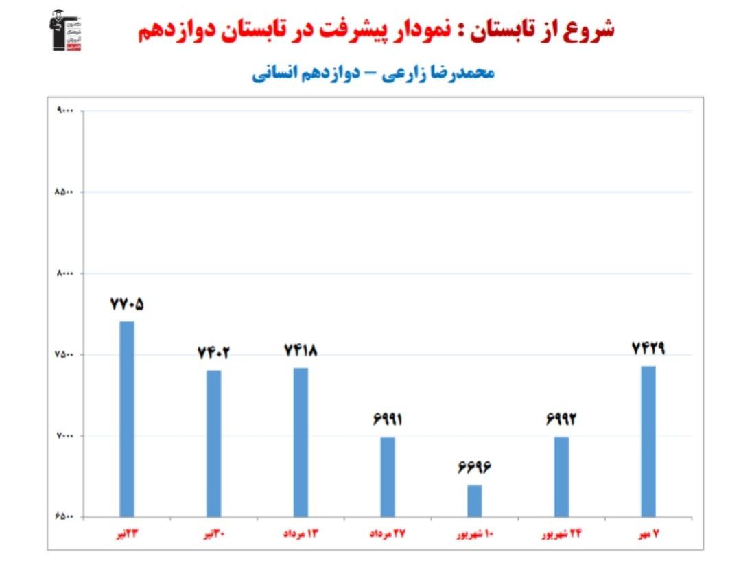 محمدرضا زارعی؛ نمودار پیشرفت در 1 سال، 2793 پاسخ صحیح