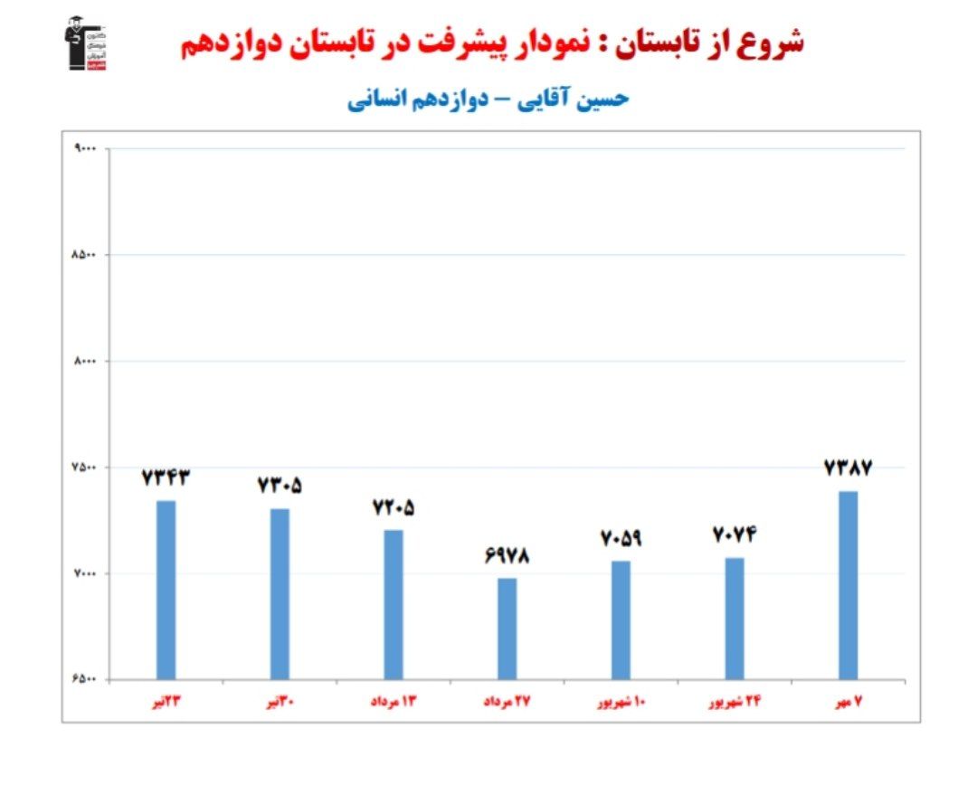 حسین آقایی؛ نمودار پیشرفت در 5 سال، 3374 پاسخ صحیح
