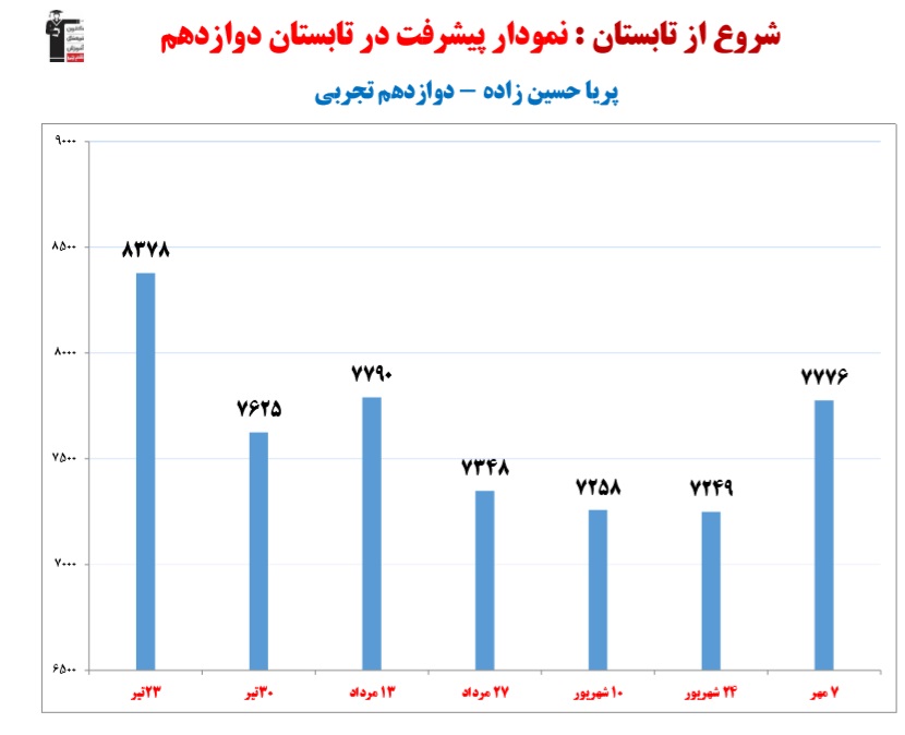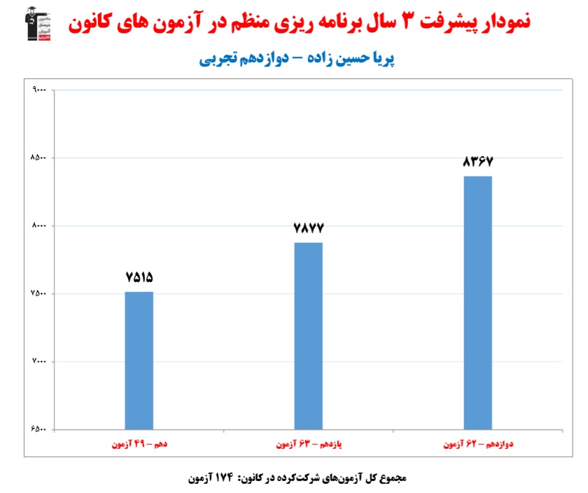 پریا حسینزاده، نمودار پیشرفت در 3 سال، 3788 پاسخ صحیح