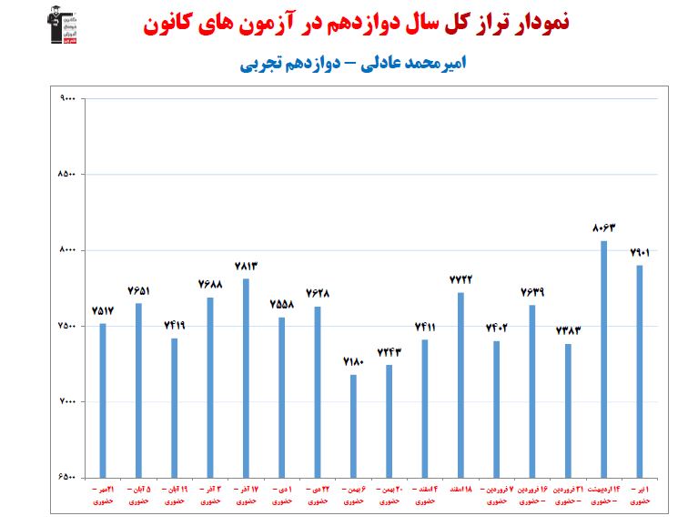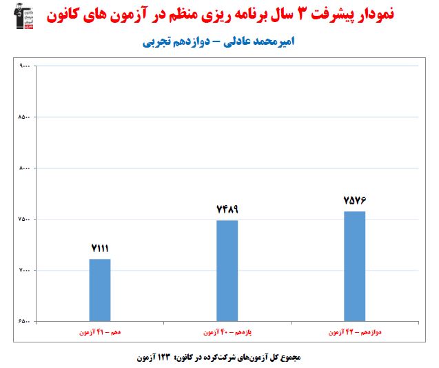 امیر محمد عادلی برتر تجربی نمودار پیشرفت درسی با 3546 پاسخ صحیح