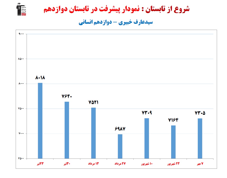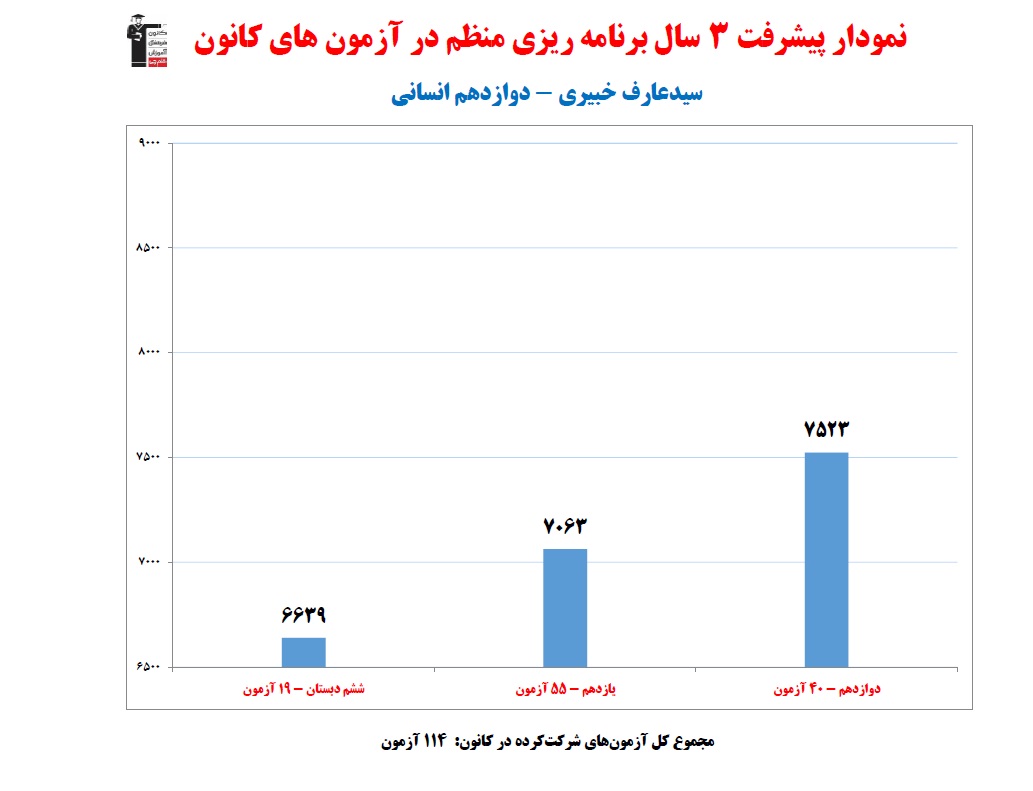 سیدعارف خبیری، نمودار پیشرفت در 3 سال، 114 آزمون، 2374 پاسخ صحیح، دوازدهم انسانی