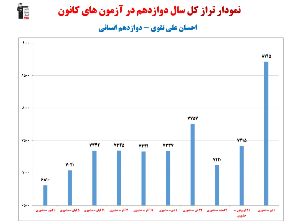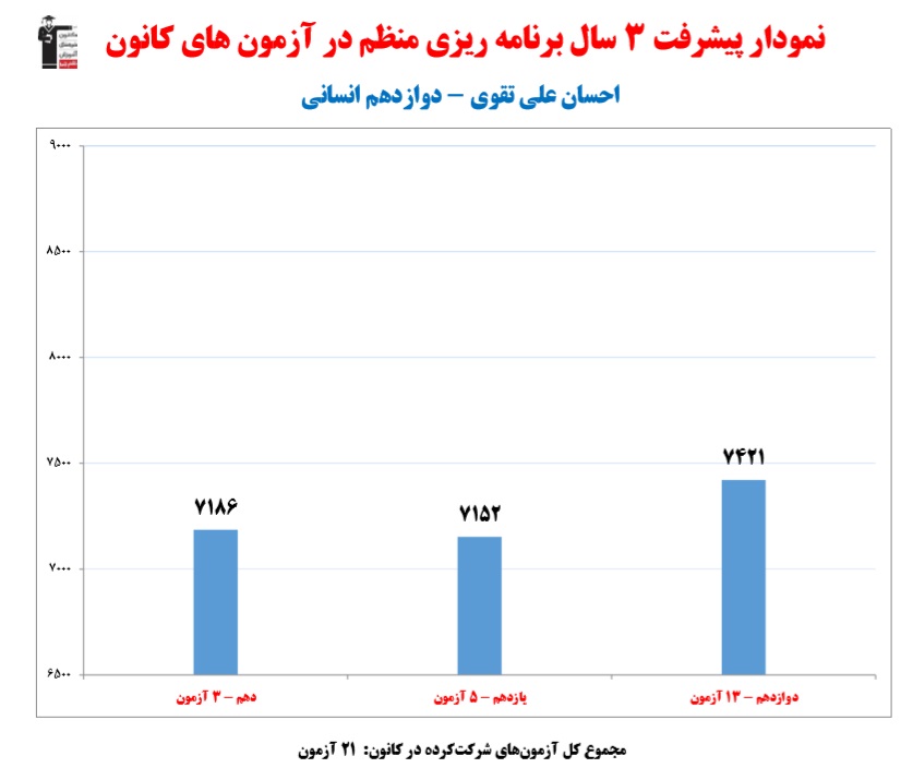 احسان علی تقوی، نمودار پیشرفت در 3 سال، 1517 پاسخ صحیح