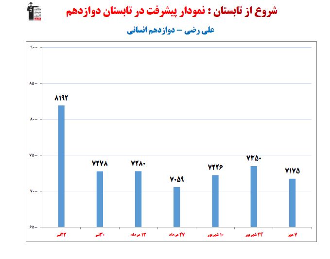 علی رضی برتر دوازدهم انسانی نمودار پیشرفت با 3574 پاسخ صحیح