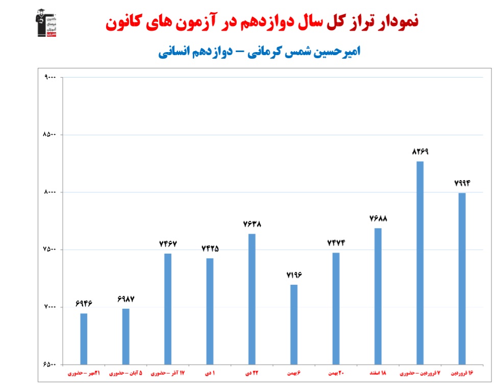 امیرحسین شمس کرمانی، نمودار پیشرفت در 3 سال، 1315 پاسخ صحیح