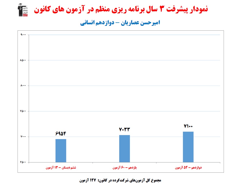 امیرحسن عصاریان ،قهرمان پیوستگی ، نمودار پیشرفت در 3 سال ، 127 آزمون