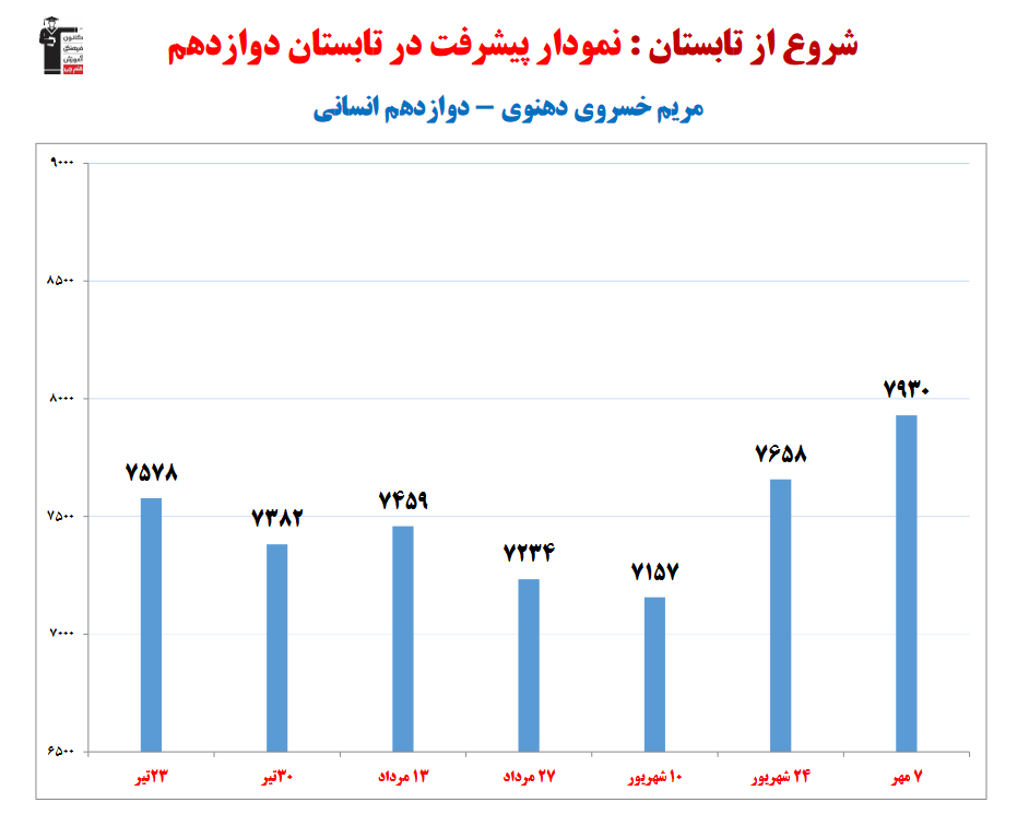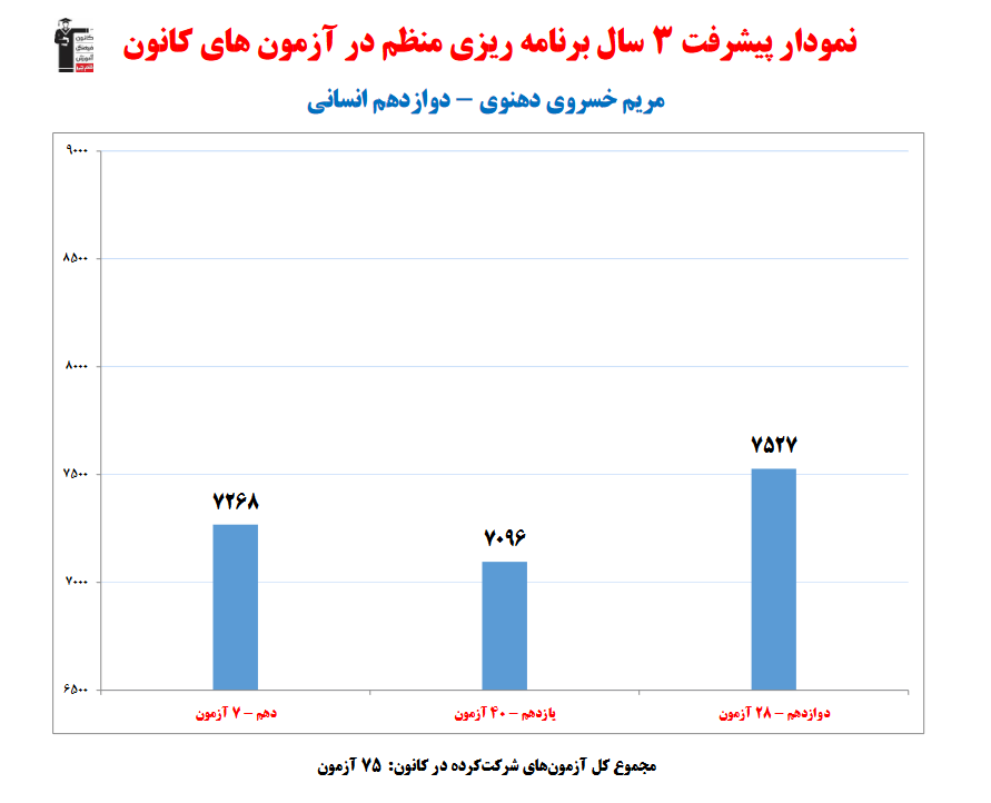 مریم خسروی دهنوی؛ نمودار پیشرفت در 3سال، 2269پاسخ صحیح از مبارکه