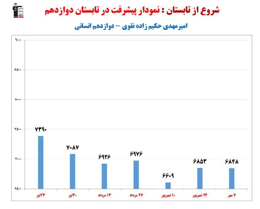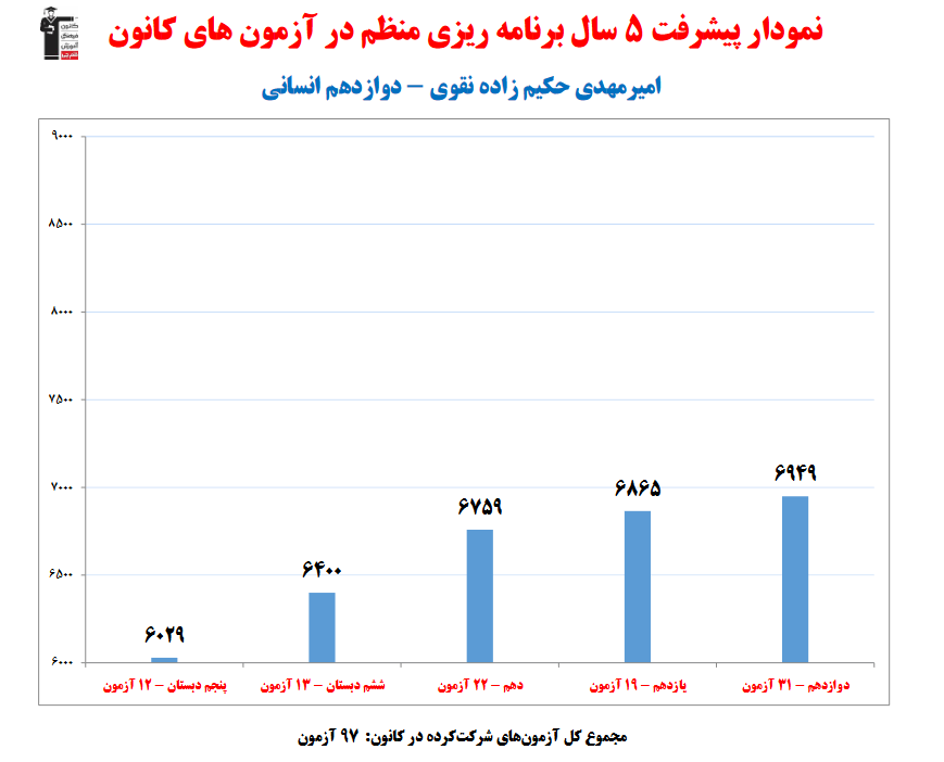 امیرمهدی حکیم زاده نقوی؛ نمودار پیشرفت در 5سال، 2507پاسخ صحیح از سیرجان