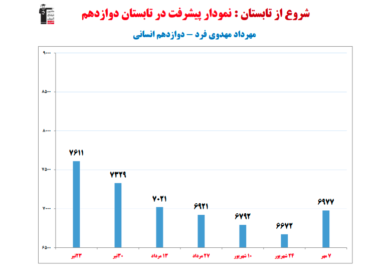 مهرداد مهدوی فرد؛ نمودار پیشرفت در 2 سال، 1784پاسخ صحیح