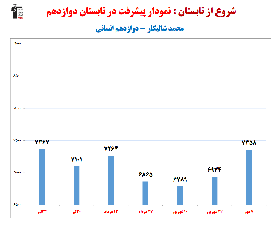 محمد شالیکار؛ نمودار پیشرفت در 3سال، 2144پاسخ صحیح از آمل