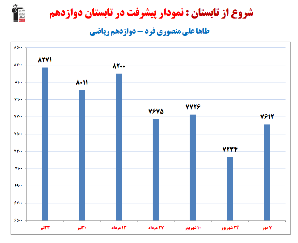 طاها علی منصوریفرد؛ نمودار پیشرفت در 10سال، 2303پاسخ صحیح