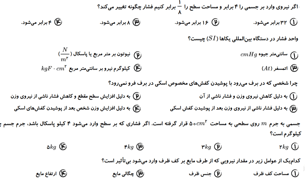 نکته: فشار با نیرو رابطه مستقیم دارد.