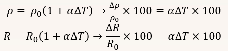 α ضریب دمایی مقاومت ویژه است. مقاومت رساناها با افزایش دما افزایش مییابد و نیمه رساناها برعکس.
