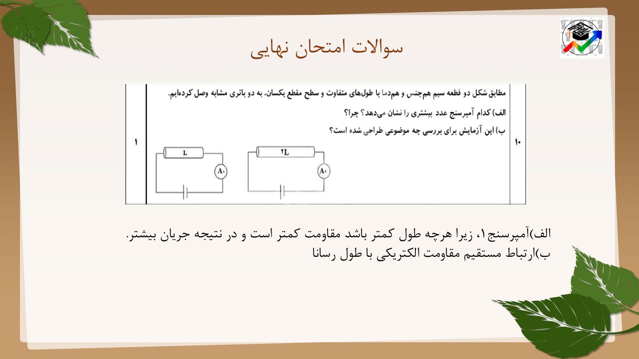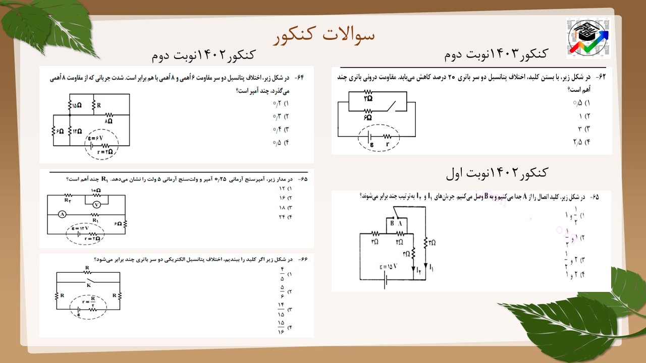 در ابتدا سوالاتی که از این بخش از جریان الکتریکی و مدارهای جریان مستقیم در امتحان نهایی 1403 آمده است را میبینیم.