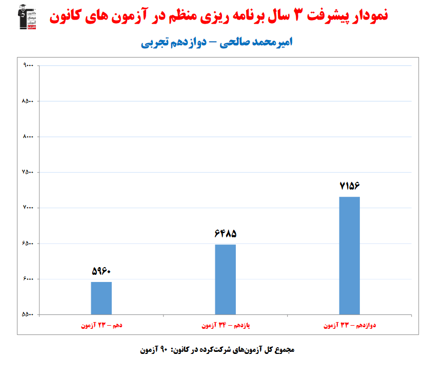 امیرمحمد صالحی؛ نمودار پیشرفت در 3سال، 2870پاسخ صحیح