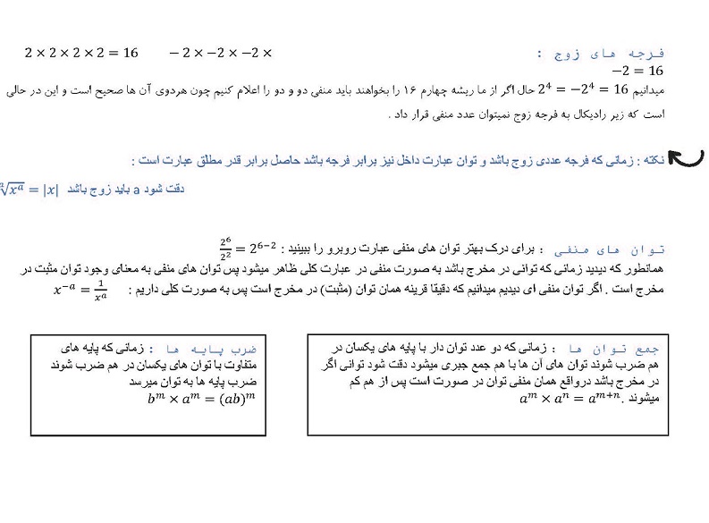 نکته و تست ـ ریاضی 1 ـ 12 هنرستان ـ آزمون 16 شهریور