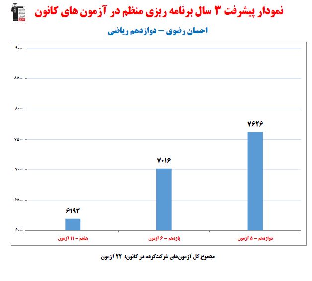 احسان رضوی رتبه 3 کشوری کنکور ریاضی 1403 (3 سال، 22 آزمون)