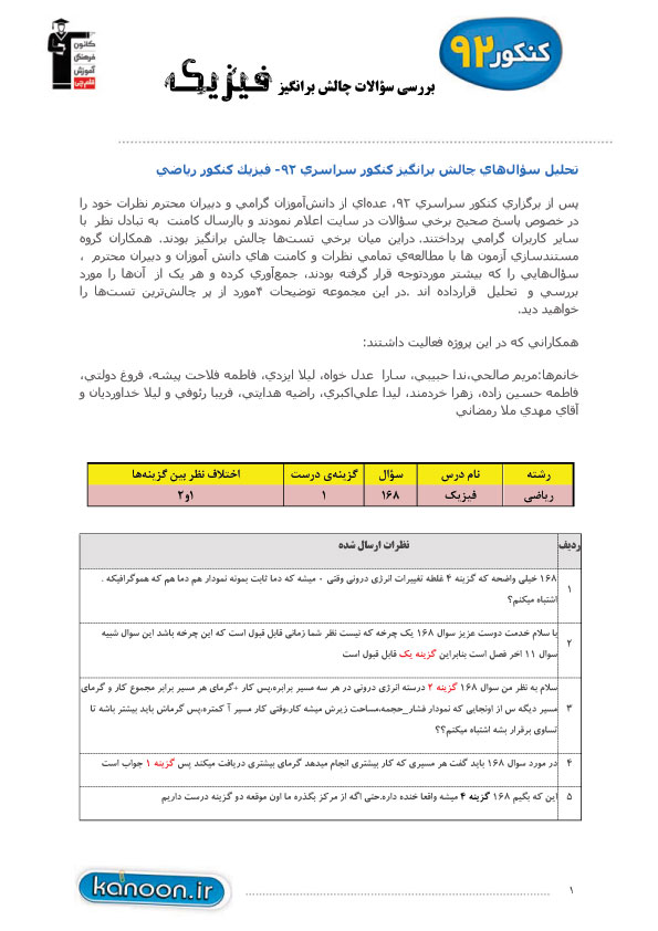 تحلیل سؤالهای چالش برانگیز کنکور سراسری 92- فیزیک کنکور ریاضی