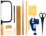 اره مويي، در حدود 80 عدد قلاب فلزي کوچک (با سر پيچي)، 5 عدد نوار کشي، خودکار، ريسمان، چسب موکت، خطکش، قيچي، نوار چوبي به ابعاد ميليمتر12× ميليمتر 12× سانتيمتر30 ، بلوک چوبي به ابعاد ميليمتر12× سانتيمتر 10× سانتيمتر10،