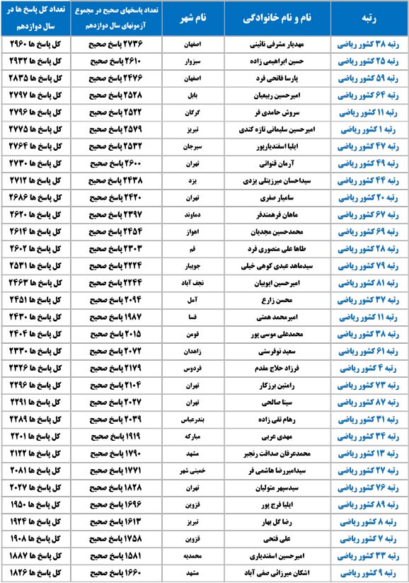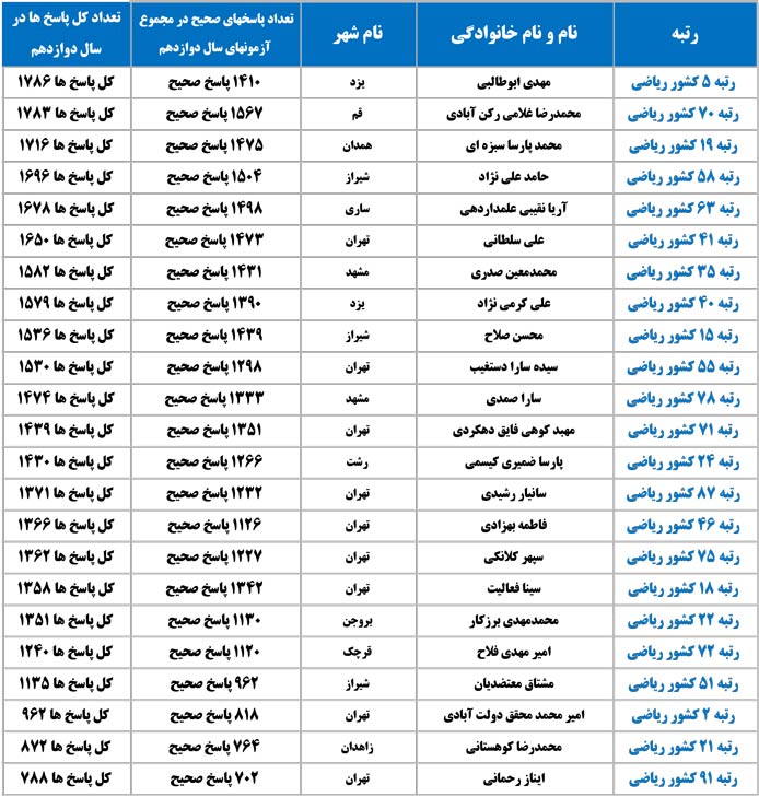با چه رتبه ای در چه رشته ای قبول شدند ؟(ریاضی)