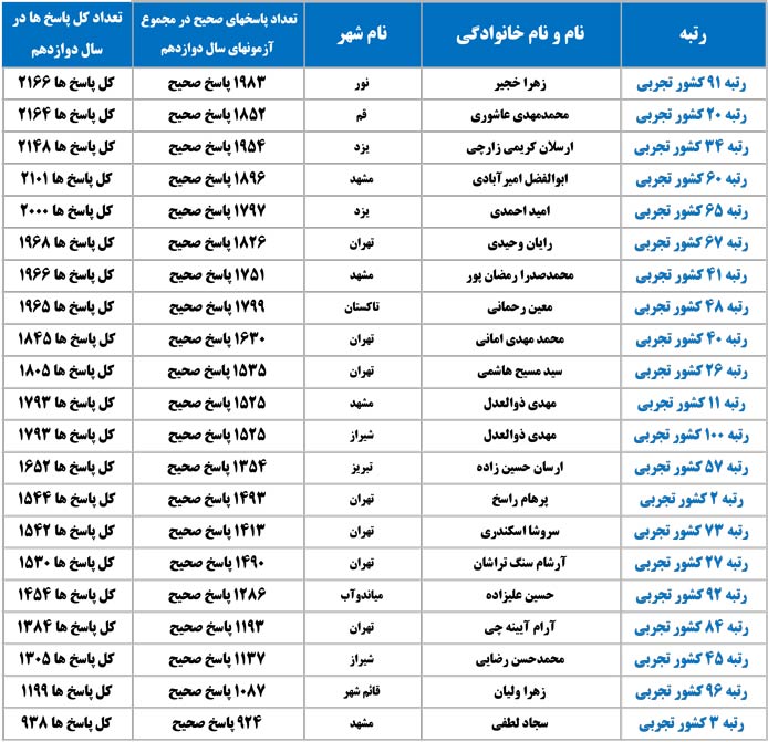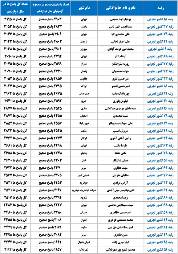 با چه رتبه ای در چه رشته ای قبول شدند ؟(تجربی)