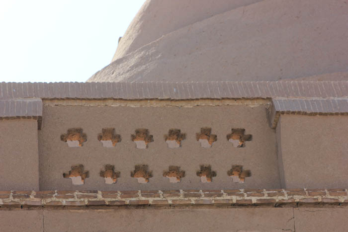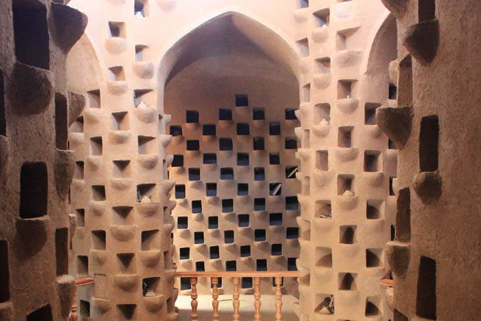 یخچال خشتی: یک ساختمان عظیم با دو حوض در مقابل آن که آب آن در شب های سرد زمستان کویر یخ می زند. این یخ ها به داخل ساختمان منتقل می شده و در یک گودال عظیم که تقریبا تمام بخش درونی ساختمان را تشکیل می دهد انبار می شده است. این یخ ها در تابستان های گرم استفاده می شده است. شاید نام یخ چال های مدرن امروزی از همین چاله ی عظیم یخ گرفته شده است.