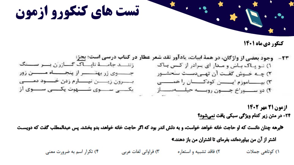 2- 5 تست شناسنامه دار از ازمون و کنکور این مبحث در سالیان اخیر