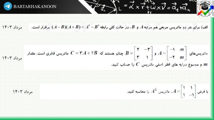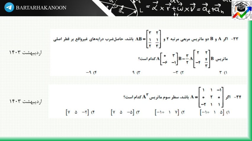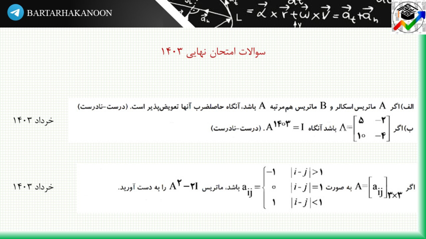 در ابتدای مطلب، پنج سوال از امتحانات نهایی 1403 از این درس قرار گرفته است.