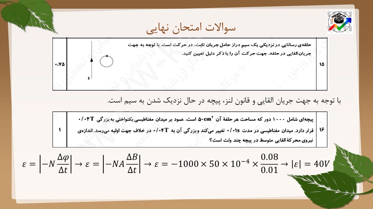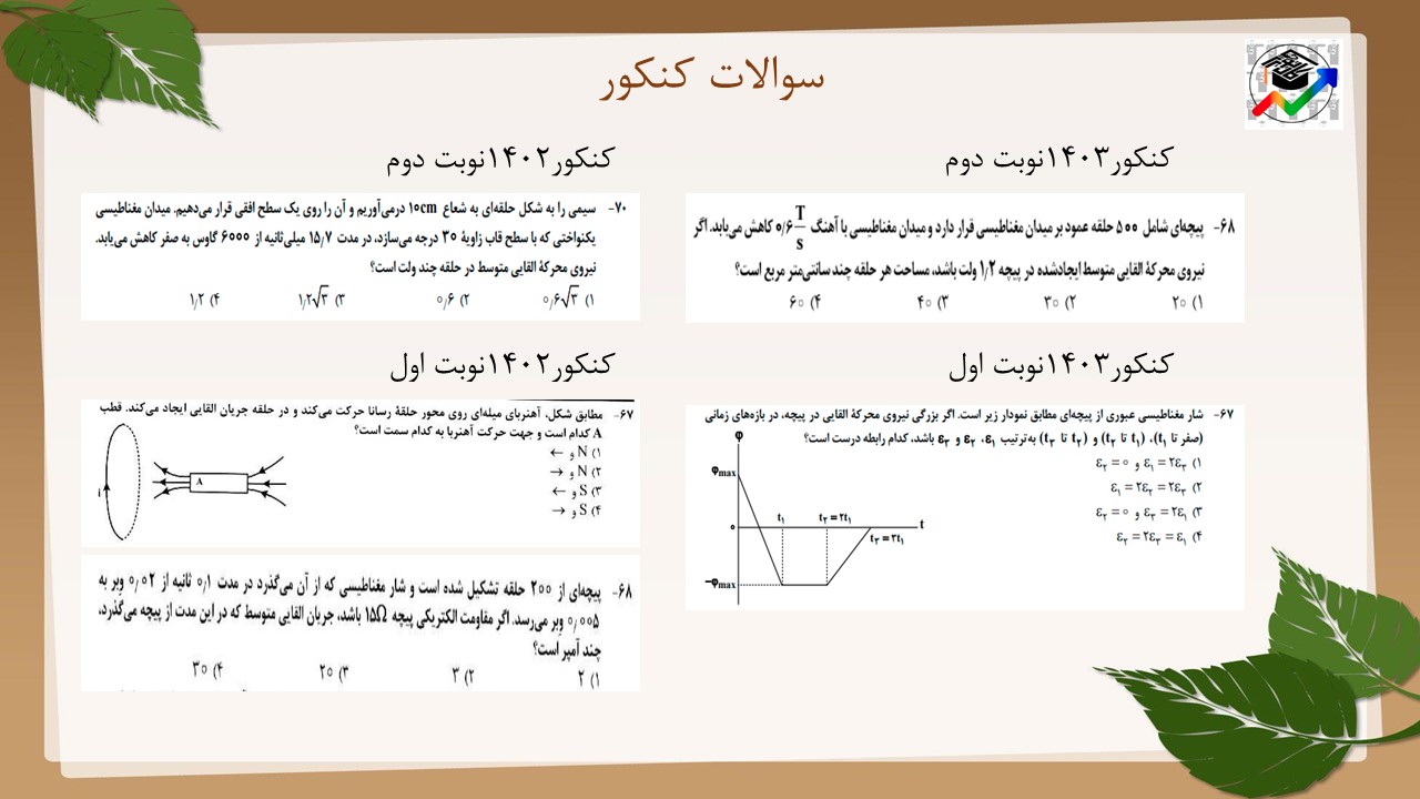 در ابتدا سوالی که از این بخش از القای الکترومغناطیسی و جریان متناوب در امتحان نهایی 1403 آمده است را میبینیم.