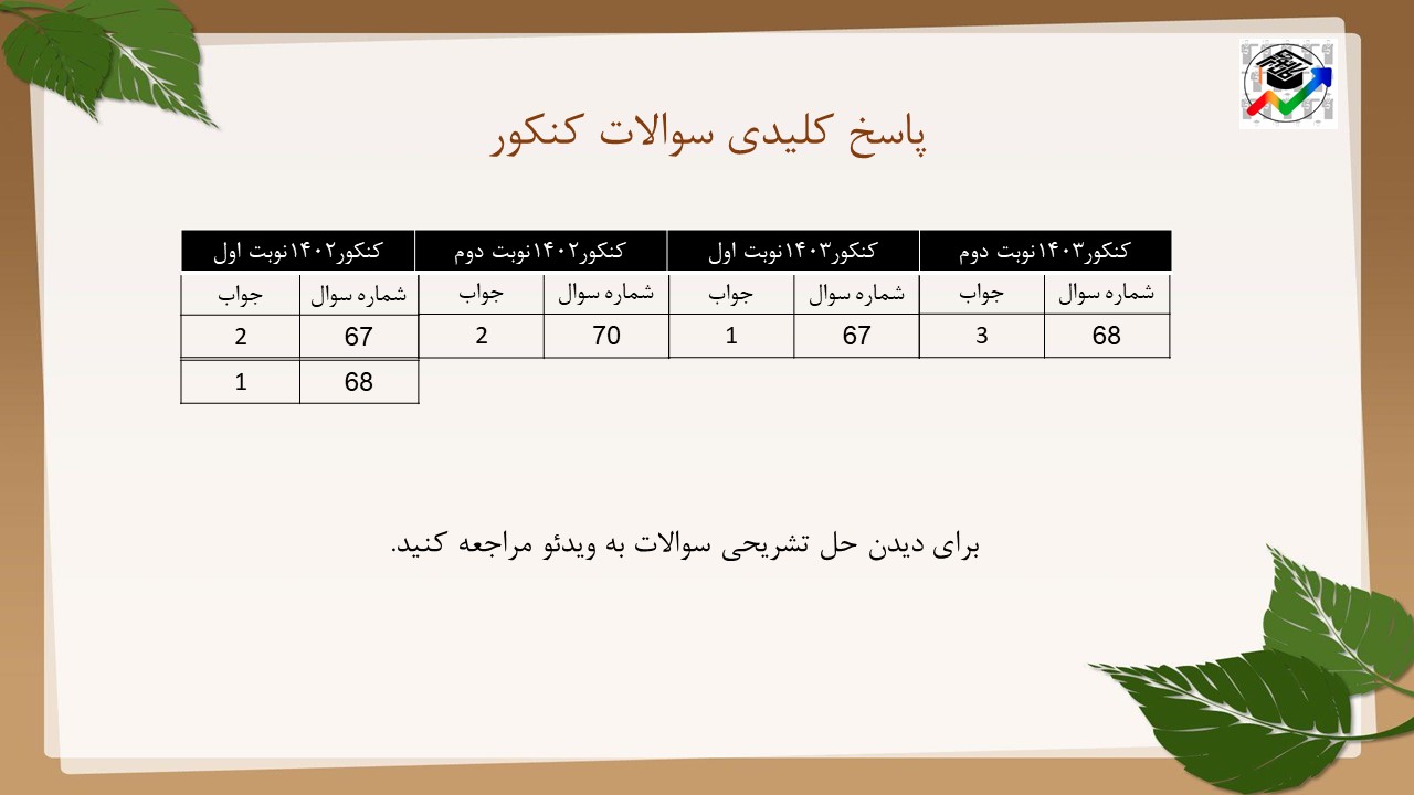 🔴برای مشاهده پاسخنامه تشریحی و تحلیل تست ها میتوانید اینجا کلیک کنید🔴