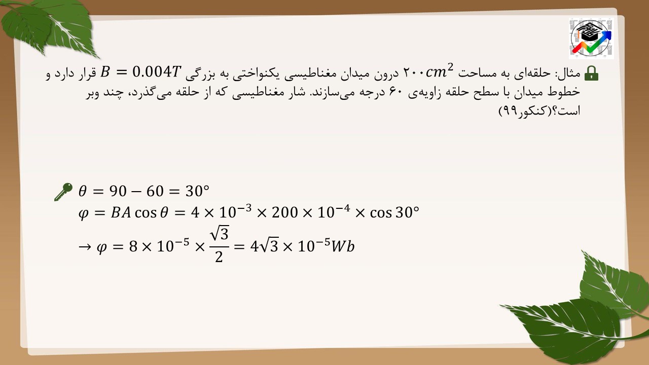 توجه: اگه θ صفر باشد شار مغناطیسی ماکسیمم میشود، اگه نود درجه باشد شار صفر میشود.