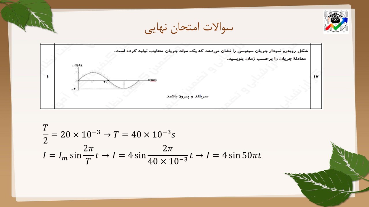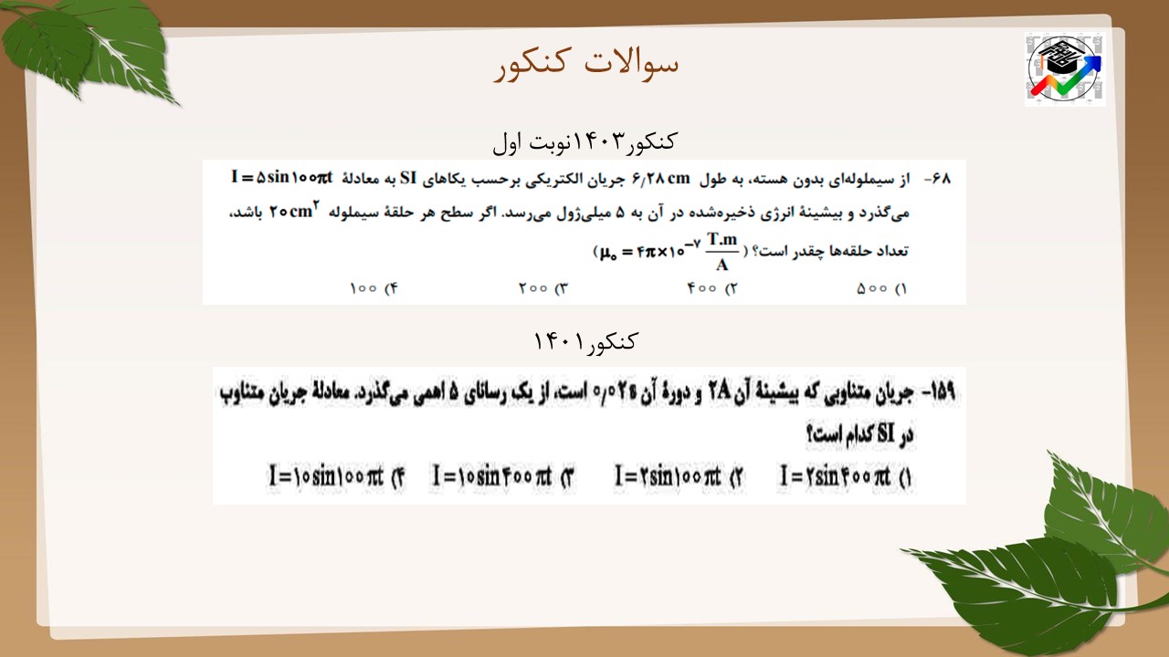 در ابتدا سوالی که از این بخش از القای الکترومغناطیسی و جریان متناوب در امتحان نهایی 1403 آمده است را میبینیم.