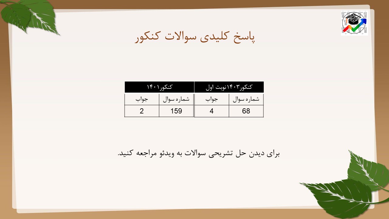 در آخر 2 تست کنکورهای سالهای اخیر را به همراه پاسخ کلیدی برایتان قرار دادیم.