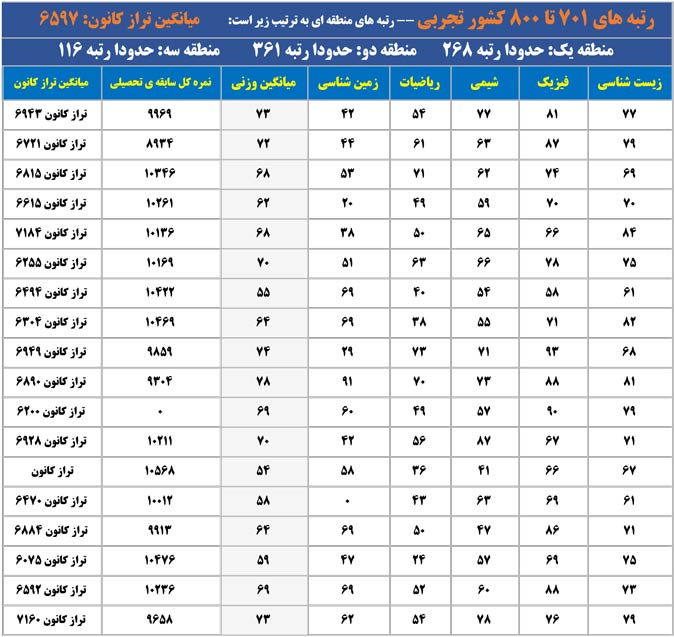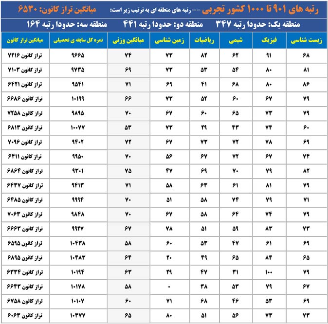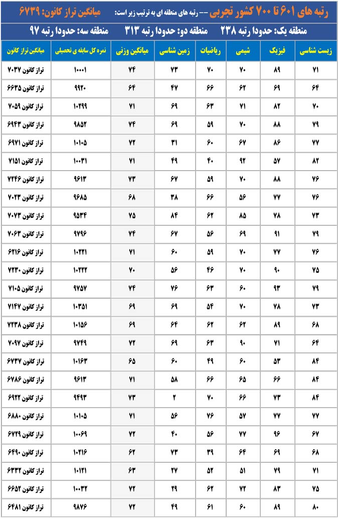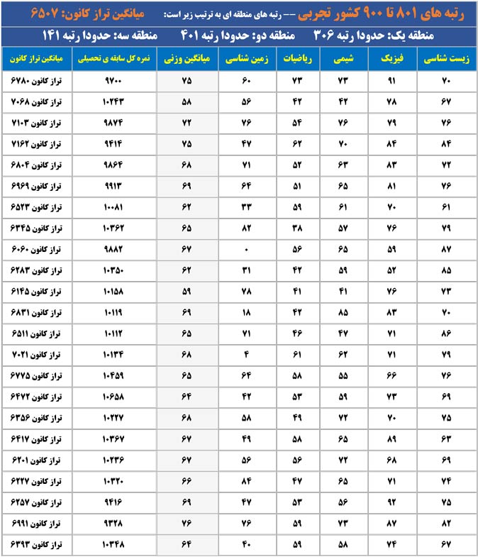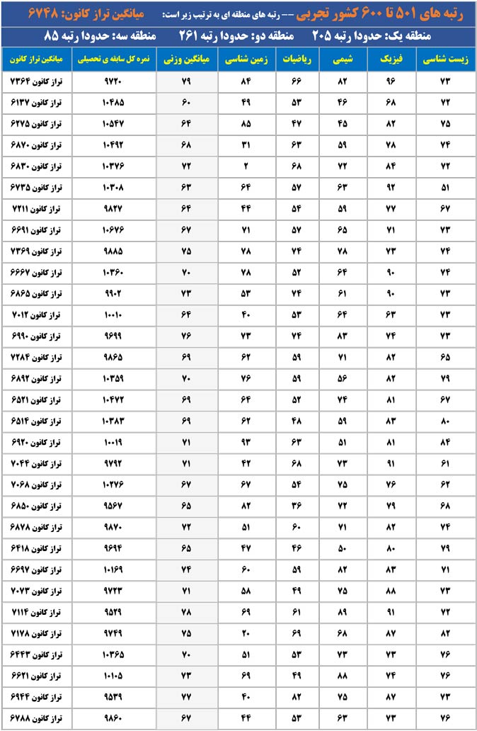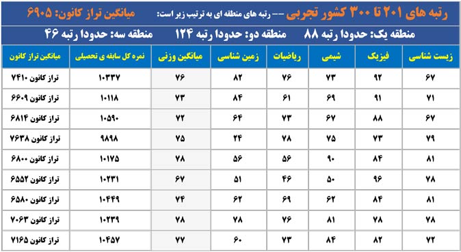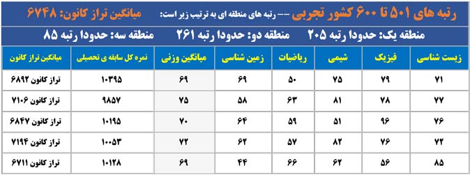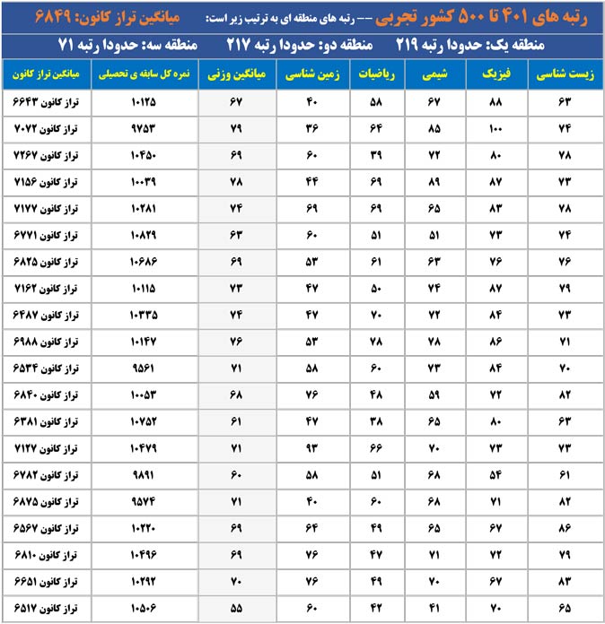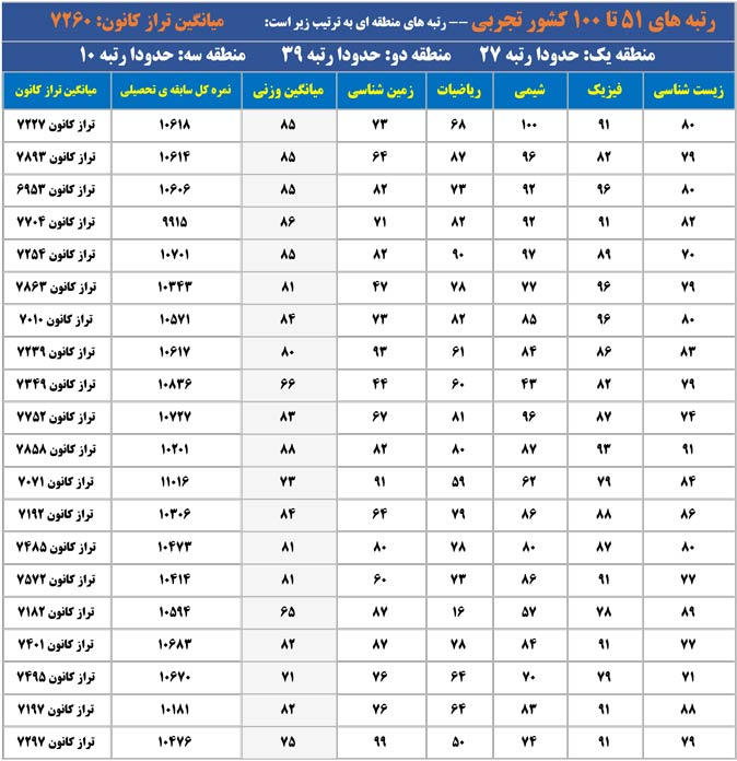 کارنامه کنکور بر اساس رشته و دانشگاه
