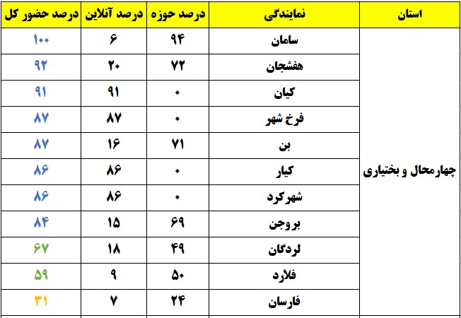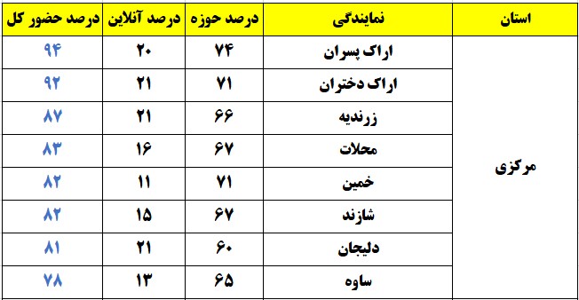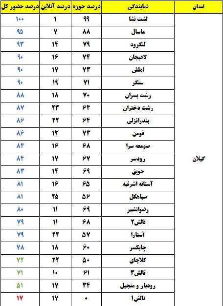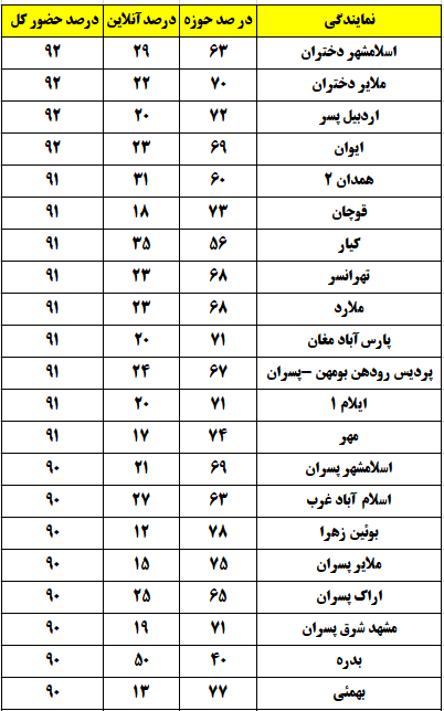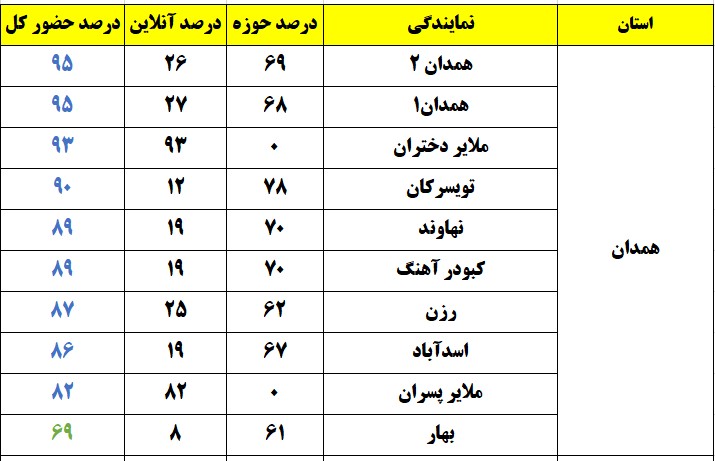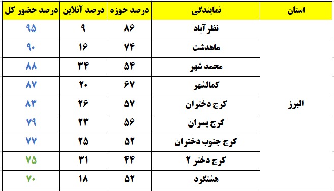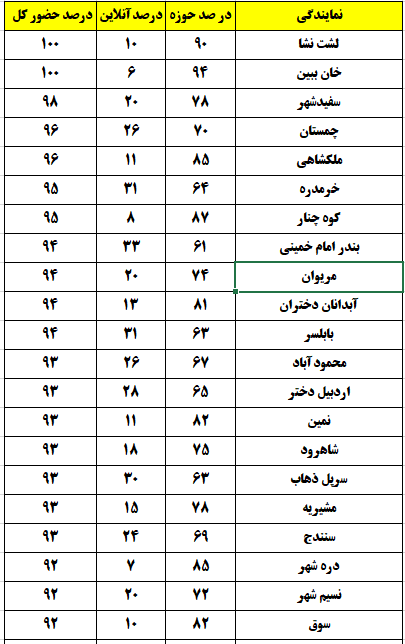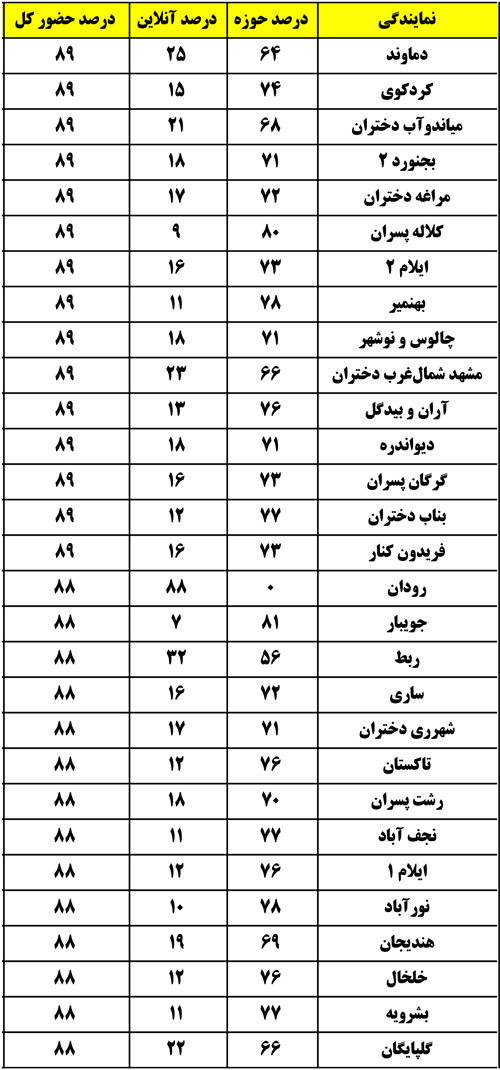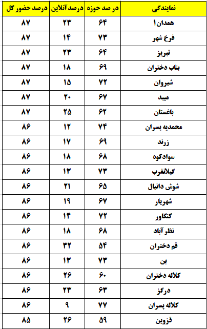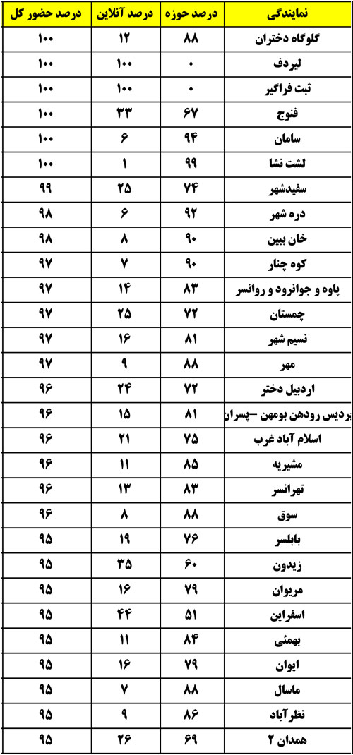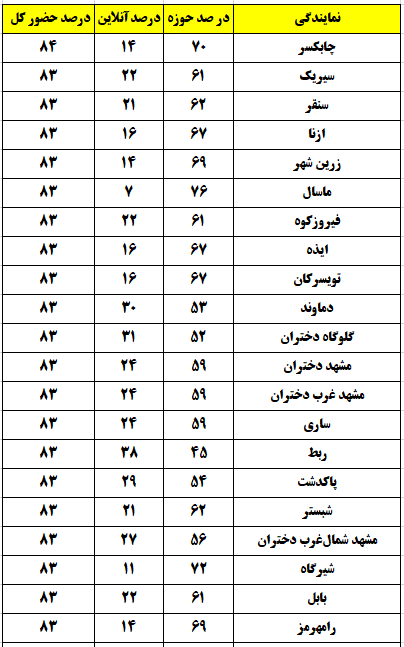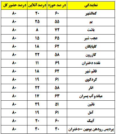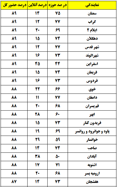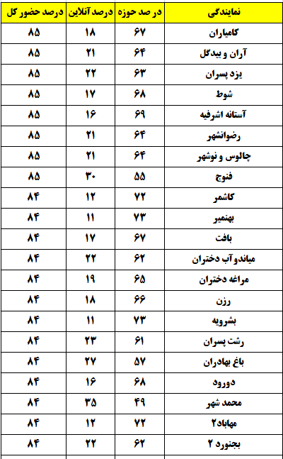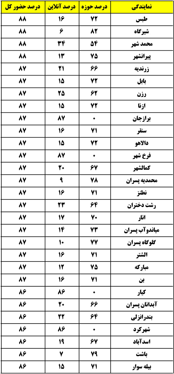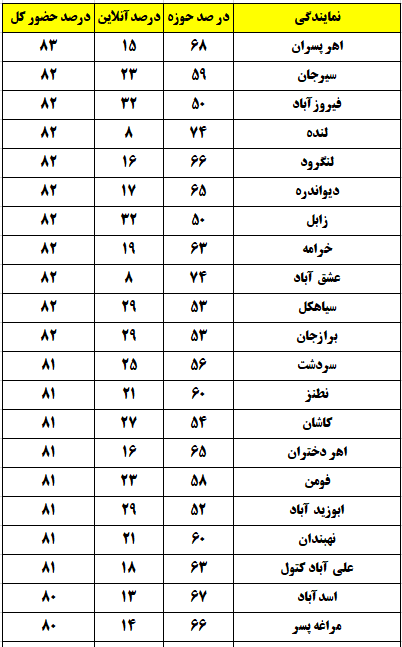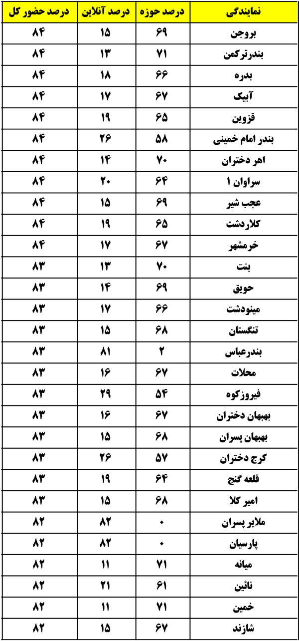 شهرهایی که درصد حضور بالای 80 درصد داشتند