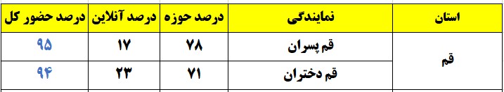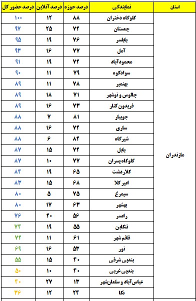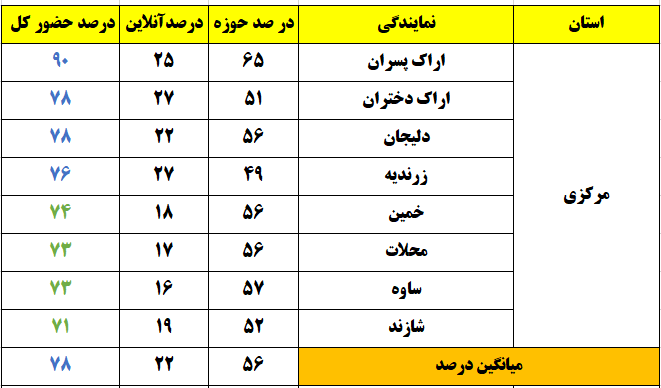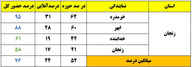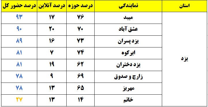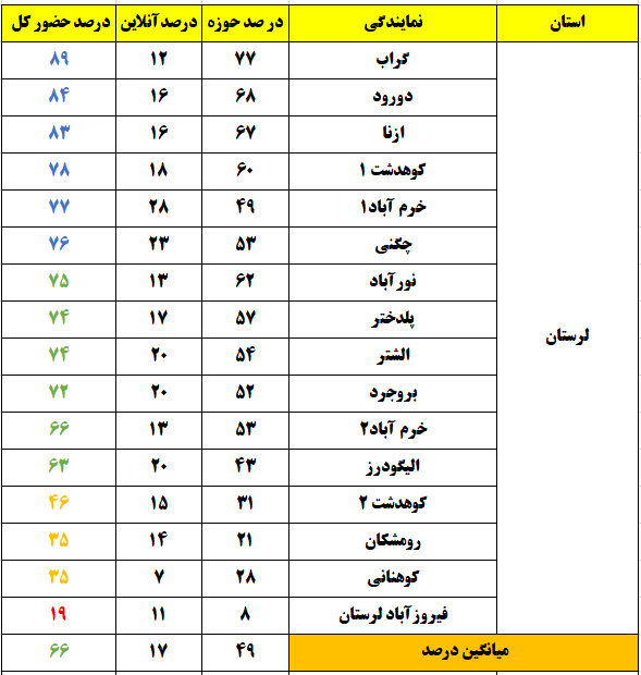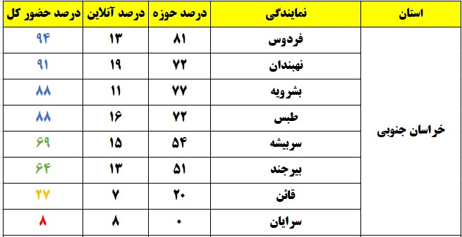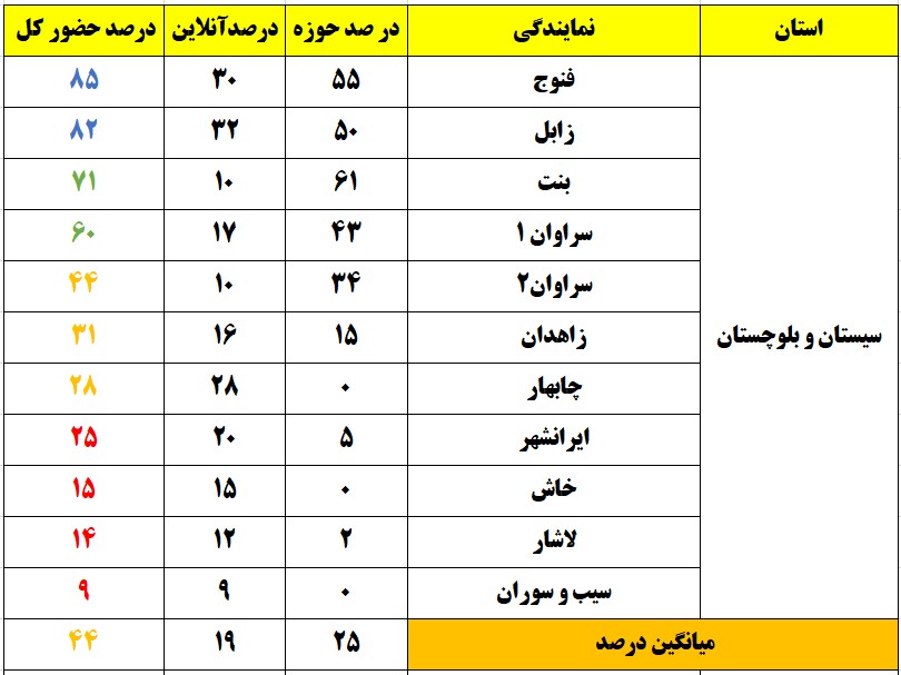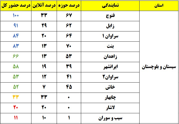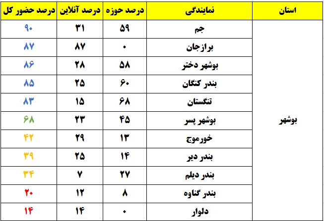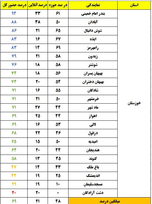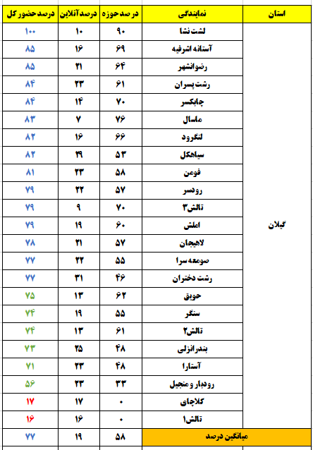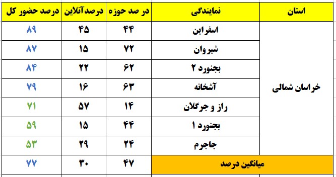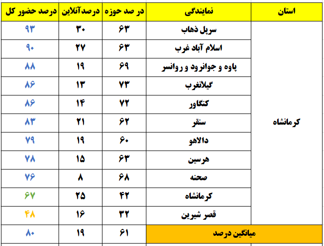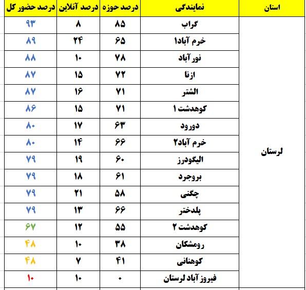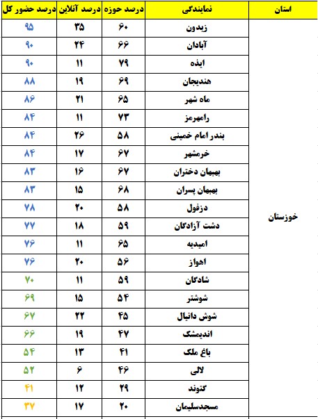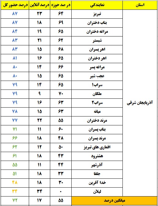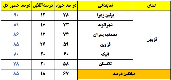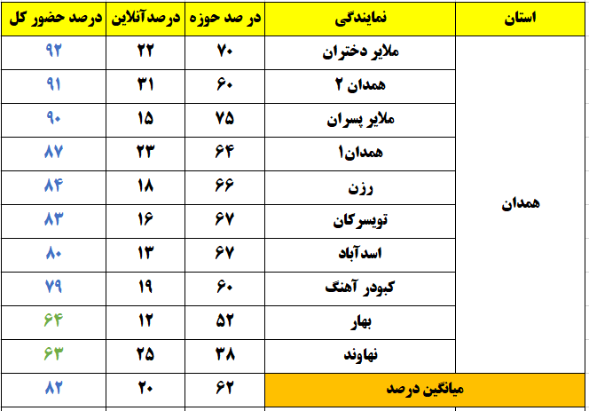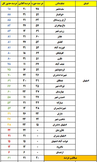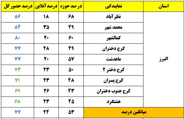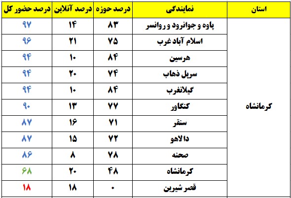 شهرهایی که درصد حضور بالای 80 درصد داشتند