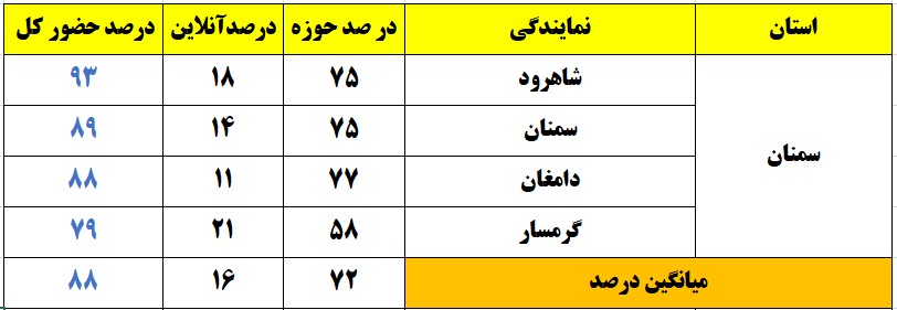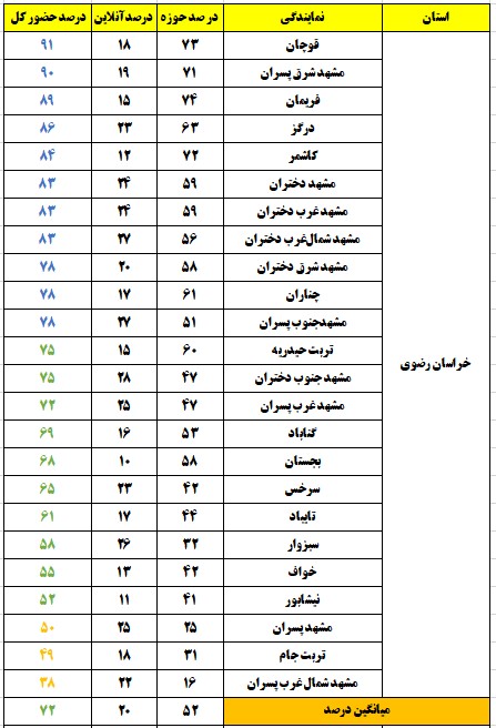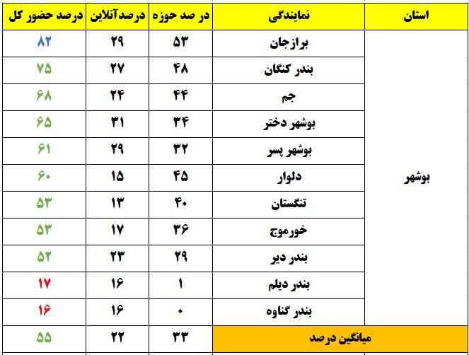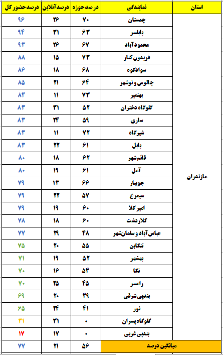 درصد حضور بر اساس استان و شهر(وضعیت حضور تا ساعت 13)