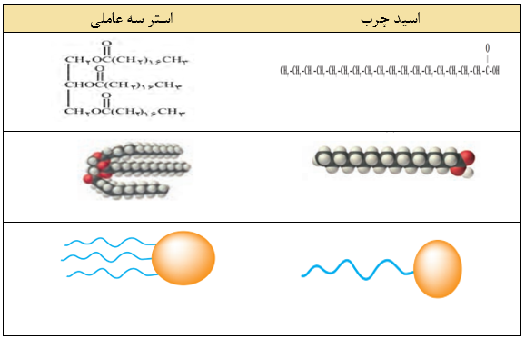 • چربی ها را می توان مخلوطی از اسیدهای چرب 1و استرهای بلند زنجیر (با جرم مولی زیاد) دانست ، اسیدهای چرب، کربوکسیلیک اسید هایی با زنجیر بلند کربنی هستند .