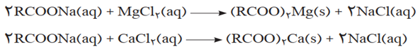 • با انجام واکنش های شیمیایی بالا و تشکیل رسوب در آب سخت که دارای مقادیر چشمگیری از یون های کلسیم و منیزیم می باشد قدرت پاک کنندگی صابون کاهی می یابد ، لکه های سفیدی که پس از شستن لباس با صابون روی آنها برجای می ماند، نشانه ای از تشکیل چنین رسوب هایی است .