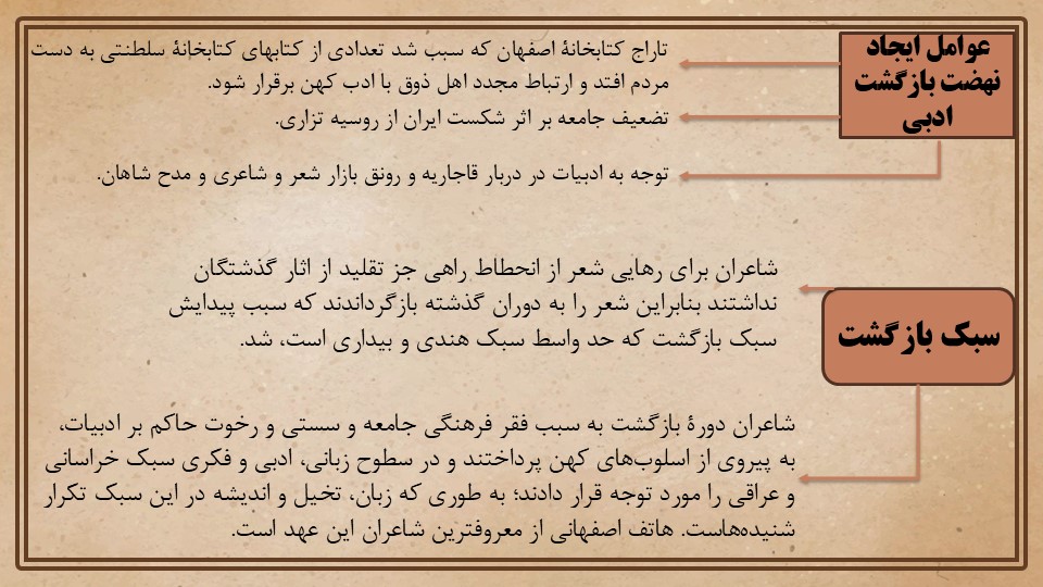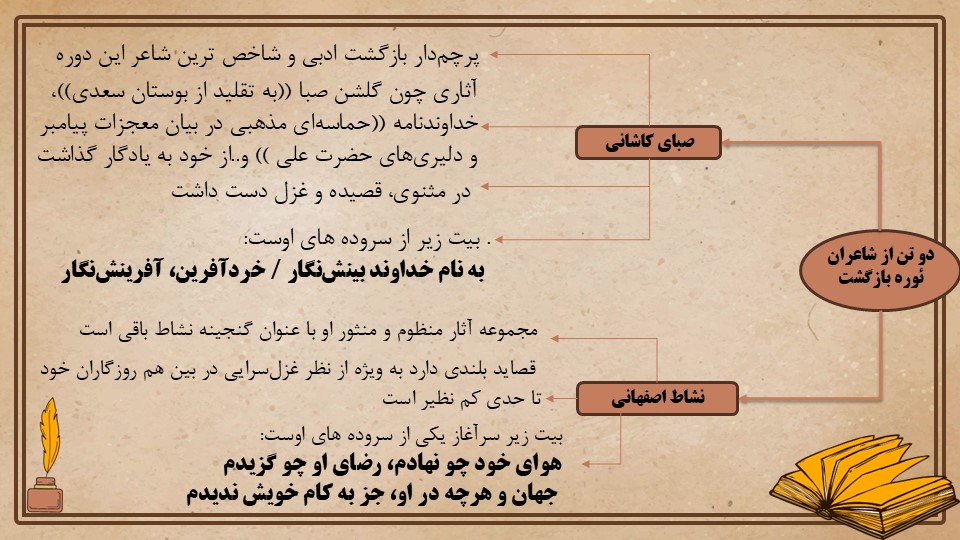 در ادامه این اسلاید از درسنامه به گروه های شاعری دوره بازگشت ( قصیده سرا و غزل سرا ) و نکات درباره انها میپردازیم